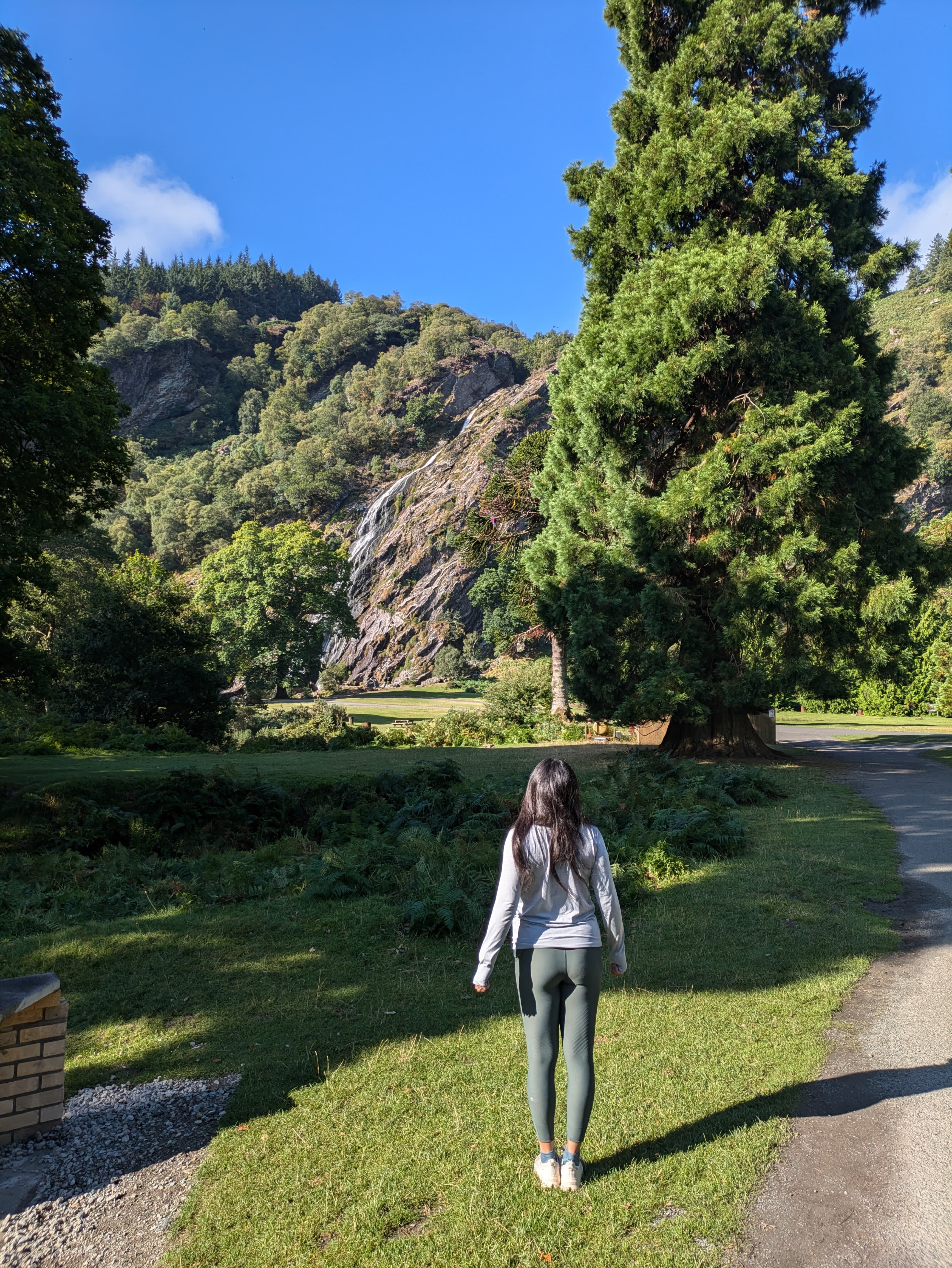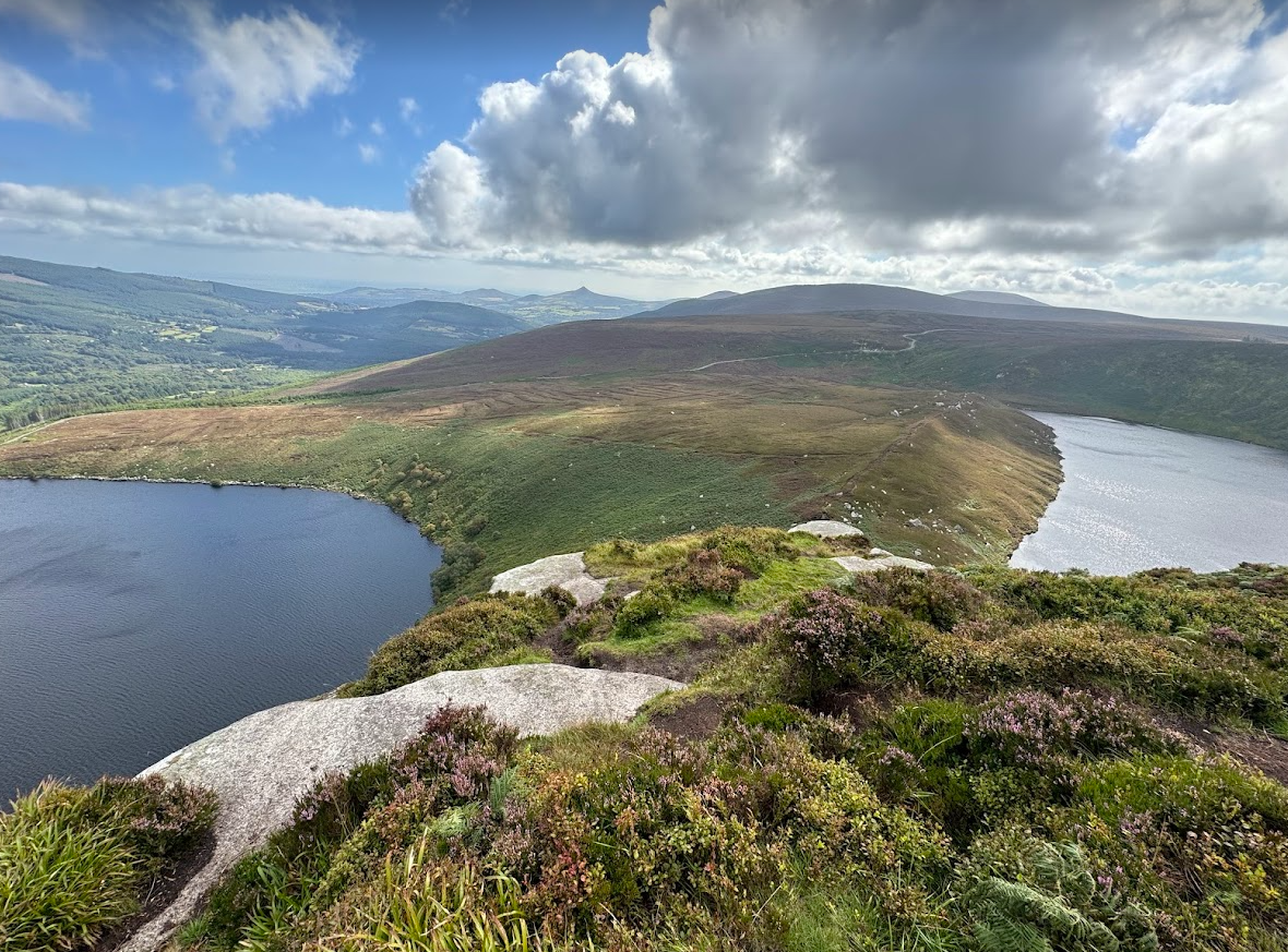 Day 2 we woke up and enjoyed the scenic trails Powerscourt Estate had on their property. V went for a nice jog while Beef followed along with a free hotel bike (not recommended for hills). Perfectly crisp fall morning. Next we packed up the car to headed to Wicklow Mountain National Park. En route we saw Ireland’s tallest waterfall, the Powerscourt Waterfall. It was free for us, as we stayed on property, else it wouldn’t be worth the admission fee. At the NP we did a beautiful 5 mile hike around two lakes (“lough”). The hike was called Kippure via Lough Bray upper. This hike was awesome because it was so open and we saw maybe 2 people the entire time. Our favorite part was the these pretty purple wild flower fields. Recommendation: Wear your muddy shoes!