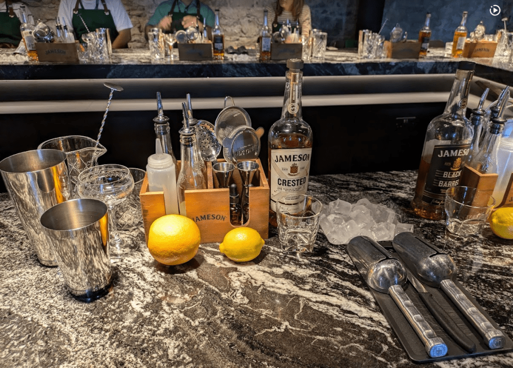 Next we drove a couple hours to Middleton to explore the Midleton Distillery. Per usual, Beef’s time management didn’t allow for a stop at Cork for a quick lunch. Midleton distillery is where Jameson, Powers and Midleton get distilled, but not bottled. Beef signed us up for a cocktail making class. In the class we learned how to make blackberry whiskey sours and an old fashions. This was super fun experience. V couldn’t get the whisky sour to have enough foam but Beef was a natural and his came out great! He even told the 20 year old cocktail instructor, he forgot to tell us to put the whiskey in one of the drinks!