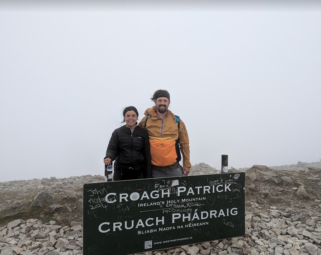 Since the bike path was an easy flat 30 mile ride (with V’s hip pain, Beef was leading the entire time), V insisted we head over to the famous Croagh Patrick hike, so that is exactly what we did. Ireland calls this trail “The holy mountain”. Ireland’s patron saint, St Patrick, is said to have spent 40 days and 40 nights on the mountain in 441 AD, and the name ‘Croagh Patrick’ comes from the Irish ‘Cruach Phádraig’ meaning ‘Patrick’s Stack’. This hike was only 4 miles long but was SO steep. We made it to the top sub 2 hours, where the submit was completely engulfed in clouds. But it was worth it, at least it didn’t rain.