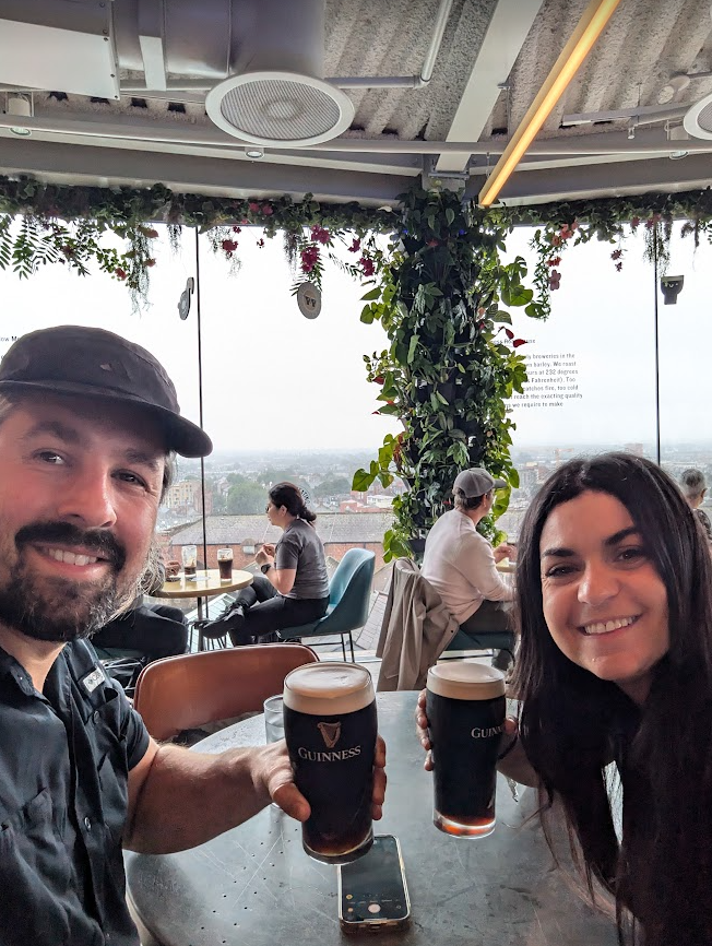 Day 5: Our flight was in the afternoon so we woke up early and drove a few hours back to Dublin. This time we decided to do the Guiness factory tour. It was surprisingly a super cool experience. The seven-story Guinness building, built in 1904, has been fitted into an educational, interactive, and fun sensory experience. We made quick rounds through the building then headed to the top floor to enjoy our Guiness in the Gravity bar which inspired a 360-degree views of the city. We got a quick snack at the many food spots in the factory and headed to the airport.