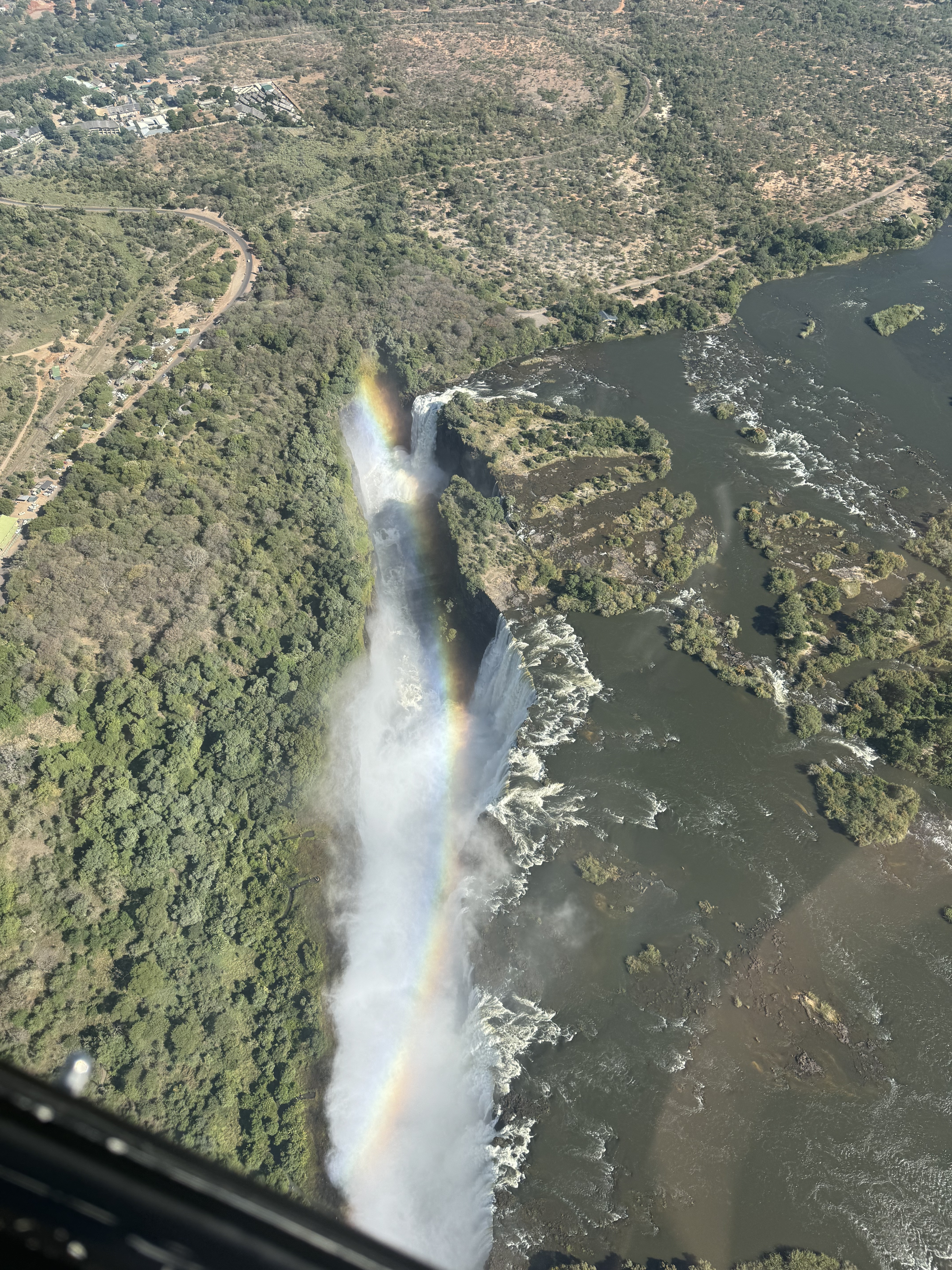 We woke up to an amazing sunrise in bed. The bed was surrounded by mesh for bug protection. Victoria Falls is within malaria region so we had to be careful. Today was Victoria Falls day! We headed out with Clever on the Jeep driving through Zambezi National Park all the way Victoria Falls. We decided to YOLO and did an incredible helicopter ride (Beef doesn’t like helis due to the Kobe situation) over Victoria Falls and our jaw dropped at the view. It was a whole new perspective seeing it topdown. Amazing views of falls/rainbows and we even saw giraffe and elephants roaming the national park.