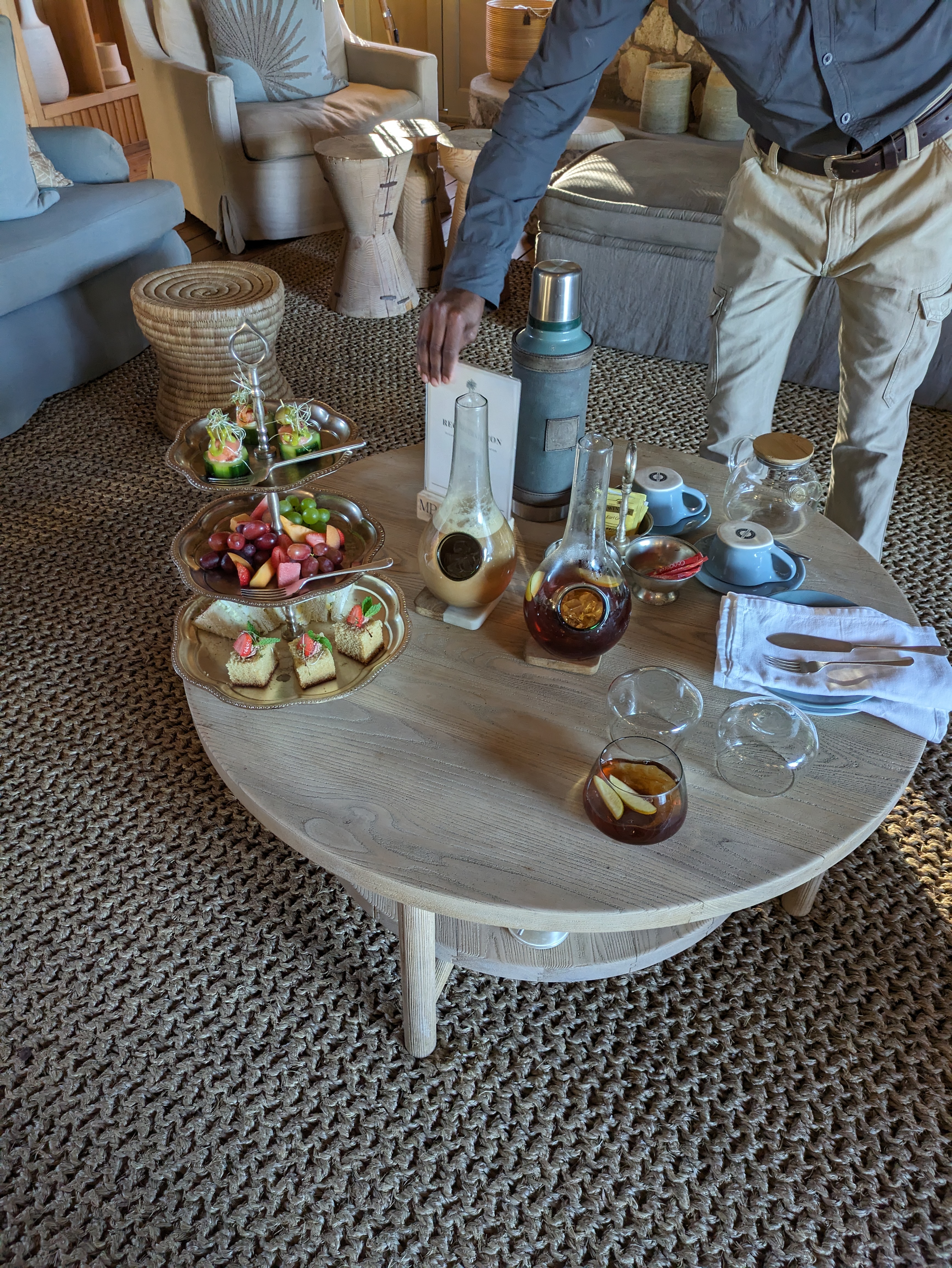 As we came up to the dock, we were greeted with the staff singing and doing local dance. They greeted us with high tea and amazing snacks and were genuinely excited to talk to us. We met our guide for the next few days named Clever and we set our schedule for the next few days.